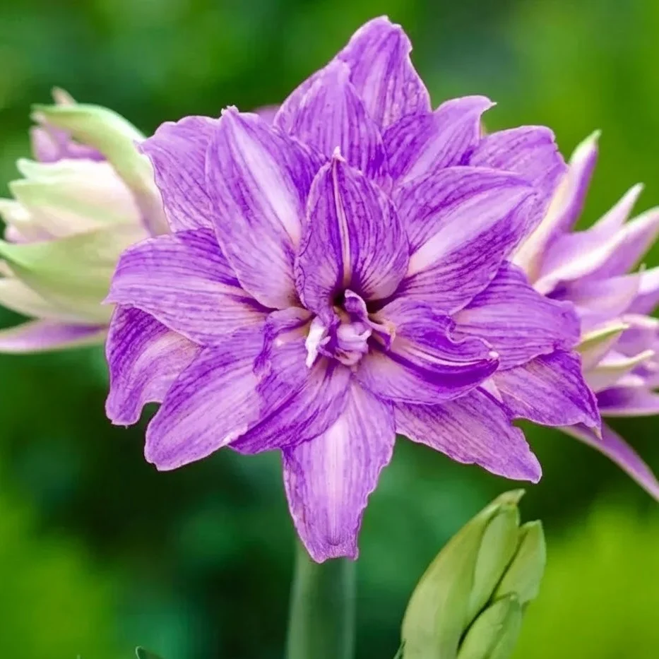 "Purple Nebula" este un soi hibrid de Hippeastrum care se distinge prin forma florii "Double Galaxy" (bătută). Spre deosebire de amaryllis-ul clasic cu 6 petale, acest soi produce flori masive, cu multiple rânduri de petale (adesea peste 12-15 pe floare), oferindu-i un aspect plin, asemănător cu un nufăr tropical sau un bujor deschis.