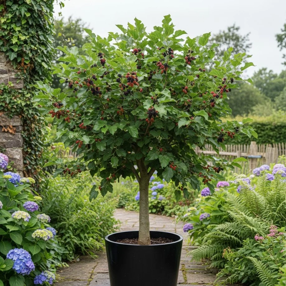 Dudul Negru la Ghiveci de 3L este o plantă robustă, ideală pentru grădinile care beneficiază de mult soare. Această specie preferă solurile nisipoase, asigurându-se astfel o dezvoltare optimă. Frunzele de dud sunt nu doar atractive, ci și utile, având aplicații în medicina tradițională. Coaja dudului a fost folosită pentru a ameliora durerile dentare, iar frunzele au fost utilizate în tratamentele împotriva mușcăturilor de șarpe. Fructele dudului, care se coc în lunile iulie și august, au o formă conică și pot atinge dimensiuni de până la 2,5 cm. Acestea au un gust dulce-acrișor, fiind bogate în vitamine, ceea ce le face ideale pentru consumul proaspăt sau pentru prepararea de gemuri, siropuri și băuturi alcoolice dulci.