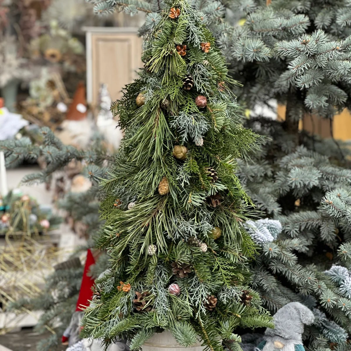 Brazii decorativi confecționați manual din brad natural aduc un farmec aparte oricărui decor de sărbători. Fiecare brad este realizat cu atenție și pasiune, folosind cetină proaspătă și elemente naturale, pentru a oferi un aspect autentic și un parfum proaspăt de pădure. Aceste piese unice sunt disponibile în diverse modele și mărimi, astfel încât să se potrivească oricărui spațiu și stil de decor. Indiferent dacă dorești un brad clasic, împodobit simplu și elegant, sau un model mai creativ cu ornamente inedite, acești brazi decorativi sunt soluția perfectă pentru a aduce spiritul Crăciunului în casa ta. Fiecare brad emană căldură și autenticitate, fiind potrivit atât pentru a decora interiorul locuinței, cât și pentru spații comerciale sau birouri. Dorim să vă informăm că, din cauza disponibilității limitate a unor componente, este posibil ca anumite elemente decorative sau nuanțe să fie ușor diferite față de cele prezentate în imagini. Cu toate acestea, vă asigurăm că fiecare coroniță și decorațiune va fi realizată cu atenție și cu aceeași calitate pe care o așteptați de la noi. Dacă aveți preferințe speciale pentru culorile elementelor decorative, vă rugăm să ne comunicați acest lucru în secțiunea Note atunci când plasați comanda, iar noi vom face tot posibilul să adaptăm produsul conform dorințelor dumneavoastră. Livrările comenzilor vor începe începând cu data de 15 Noiembrie, pentru a ne asigura că fiecare produs ajunge la timp și în condiții perfecte. Vă mulțumim pentru înțelegere și pentru încrederea acordată decorațiunilor noastre de Crăciun! ?