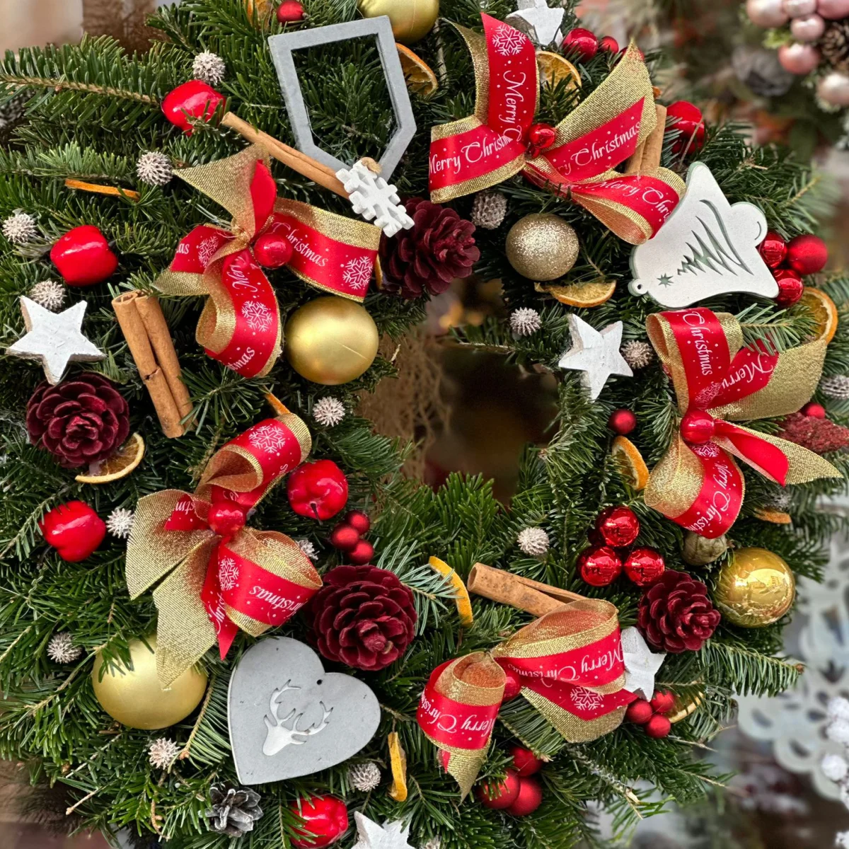 Coronițele de Crăciun confecționate manual sunt decorațiuni perfecte pentru a aduce farmecul și căldura sărbătorilor în casa dumneavoastră. Realizate cu grijă și atenție la detalii, aceste coronițe vin într-o varietate de modele, de la cele tradiționale cu ramuri de brad și conuri de pin, până la variante moderne cu globuri colorate și funde elegante. Un aspect important de reținut este că livrarea coronițelor de Crăciun începe de pe 15 Noiembrie, asigurându-vă astfel timp suficient pentru a împodobi casa și a pregăti decorul festiv înainte de sezonul sărbătorilor. Comandați o coroniță handmade pentru a aduce spiritul sărbătorilor mai aproape și pentru a crea o atmosferă de neuitat în locuința dumneavoastră! Din cauza disponibilității limitate a unor componente, este posibil ca anumite elemente decorative sau nuanțe să fie ușor diferite față de cele prezentate în imagini. Ne asigurăm însă că fiecare coroniță și decorațiune va fi realizată cu atenție și va respecta calitatea pe care o așteptați de la noi. Dacă doriți o anumită culoare pentru elementele decorative sau preferați o anumită combinație de culori, vă rugăm să ne comunicați acest lucru în secțiunea Note în momentul plasării comenzii. Vom face tot posibilul să personalizăm produsul conform dorințelor dumneavoastră! Această coroniță este disponibilă în mărimea XXL, potrivită pentru un aspect impresionant și elegant. Vă mulțumim pentru înțelegere și pentru că alegeți decorațiunile noastre speciale pentru acest sezon de sărbătoare! ?