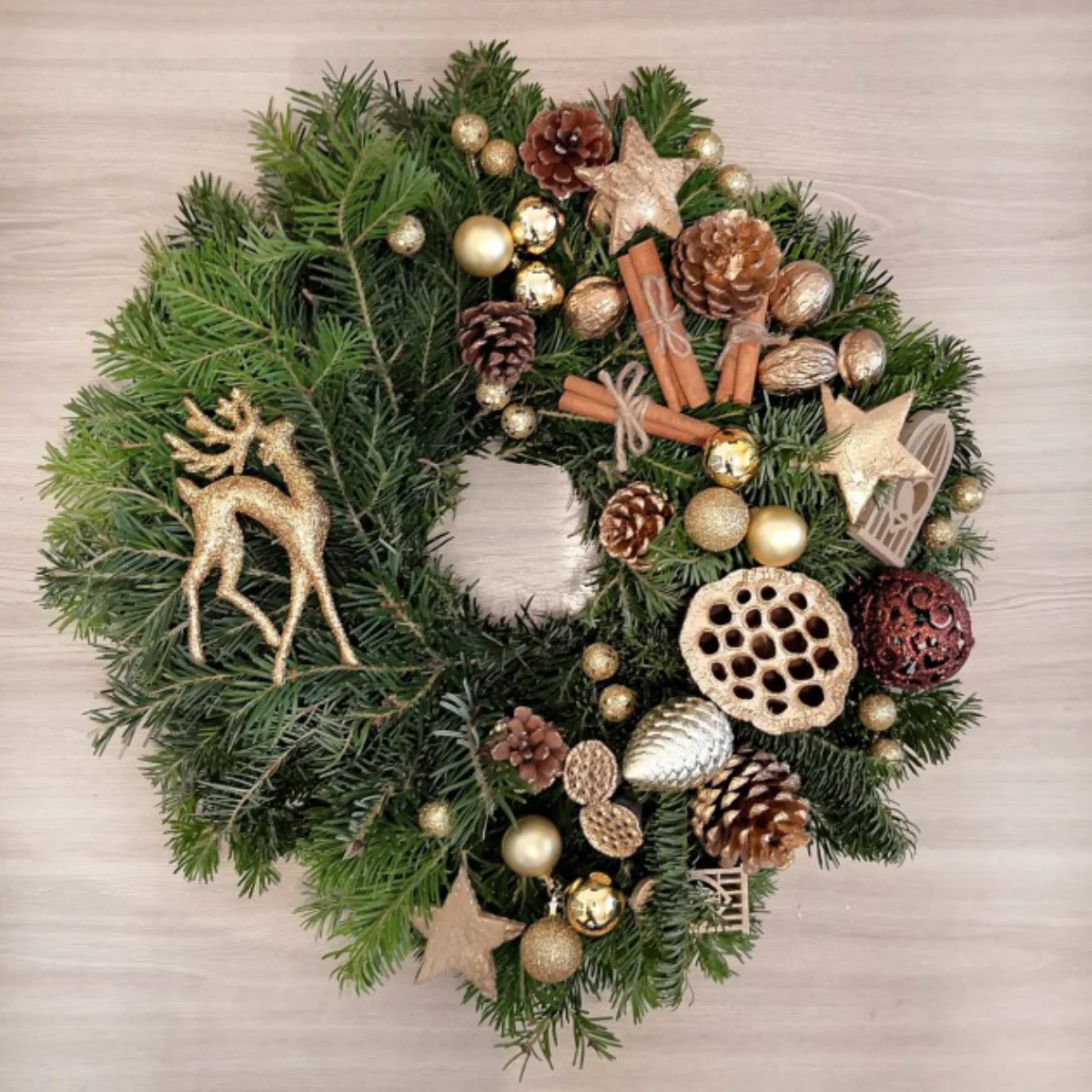 Coronițele de Crăciun confecționate manual sunt decorațiuni perfecte pentru a aduce farmecul și căldura sărbătorilor în casa dumneavoastră. Realizate cu grijă și atenție la detalii, aceste coronițe vin într-o varietate de modele, de la cele tradiționale cu ramuri de brad și conuri de pin, până la variante moderne cu globuri colorate și funde elegante. Un aspect important de reținut este că livrarea coronițelor de Crăciun începe de pe 15 Noiembrie, asigurându-vă astfel timp suficient pentru a împodobi casa și a pregăti decorul festiv înainte de sezonul sărbătorilor. Comandați o coroniță handmade pentru a aduce spiritul sărbătorilor mai aproape și pentru a crea o atmosferă de neuitat în locuința dumneavoastră! Din cauza disponibilității limitate a unor componente, este posibil ca anumite elemente decorative sau nuanțe să fie ușor diferite față de cele prezentate în imagini. Ne asigurăm însă că fiecare coroniță și decorațiune va fi realizată cu atenție și va respecta calitatea pe care o așteptați de la noi. Dacă doriți o anumită culoare pentru elementele decorative sau preferați o anumită combinație de culori, vă rugăm să ne comunicați acest lucru în secțiunea Note în momentul plasării comenzii. Vom face tot posibilul să personalizăm produsul conform dorințelor dumneavoastră! Vă mulțumim pentru înțelegere și pentru că alegeți decorațiunile noastre speciale pentru acest sezon de sărbătoare! ?