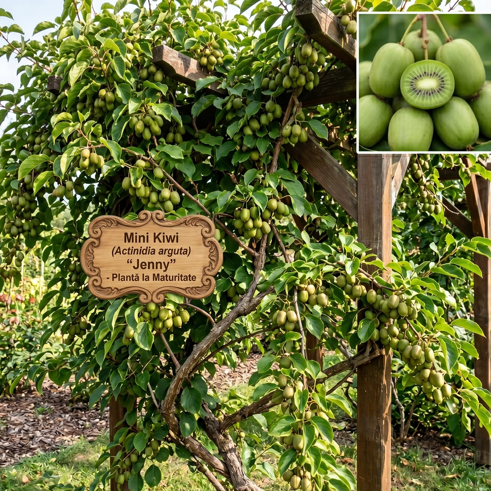 Mini Kiwi Actinidia Jenny la Ghiveci 3L este o plantă fascinantă, perfectă pentru grădinile de vară și toamnă. Această varietate de kiwi se remarcă prin florile sale mici și parfumate care înfloresc primăvara, aducând un strop de frumusețe în orice spațiu verde.