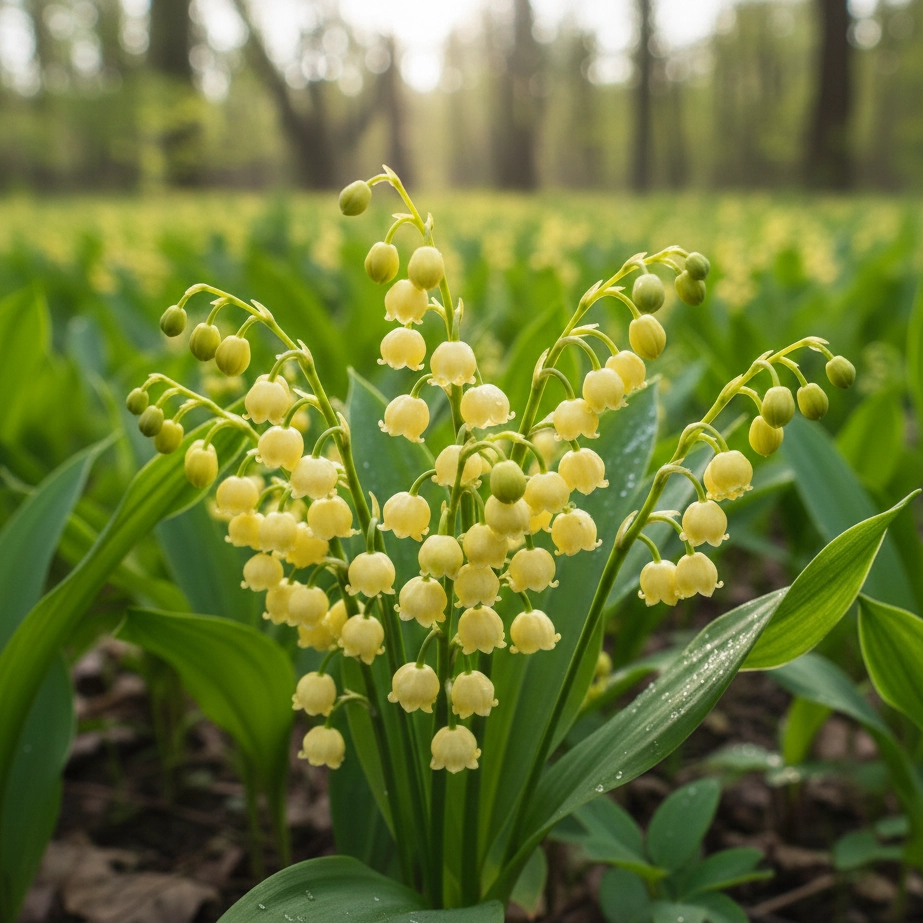 Imaginează-ți o pădure rară de foioase, unde primele raze ale soarelui pătrund printre coroanele copacilor. Printre frunzele verzi, lanceolate și lucioase, se ridică tije subțiri și elegante, ticsite cu clopoței mici, galbeni.