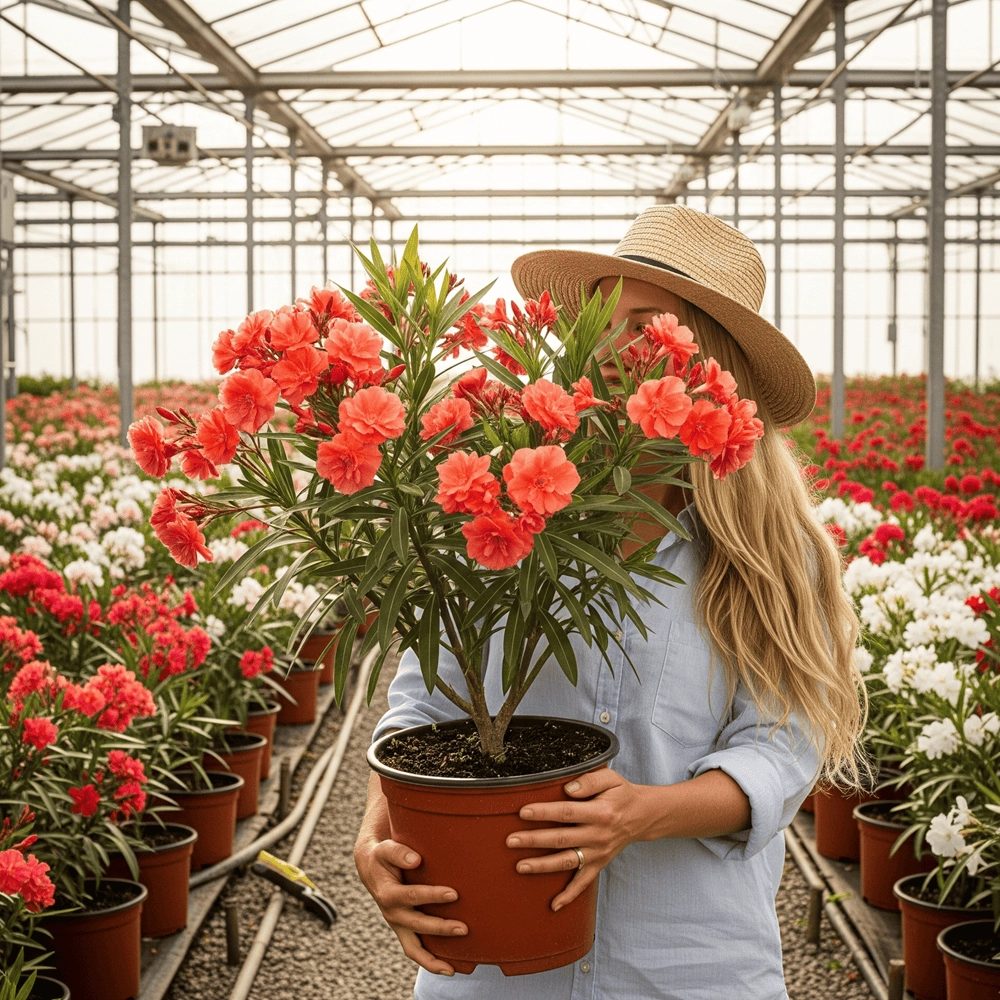 Transformă-ți spațiul exterior într-o oază mediteraneană luxuriantă cu acest Leandru Tufă excepțional, o adevărată bijuterie florală, surprinzător de rezistentă la frig! Spre deosebire de majoritatea soiurilor, această varietate specială suportă temperaturi de până la -25° grade Celsius, permițându-ți să te bucuri de frumusețea sa în zone cu ierni mai blânde, fără a necesita protecție elaborată.