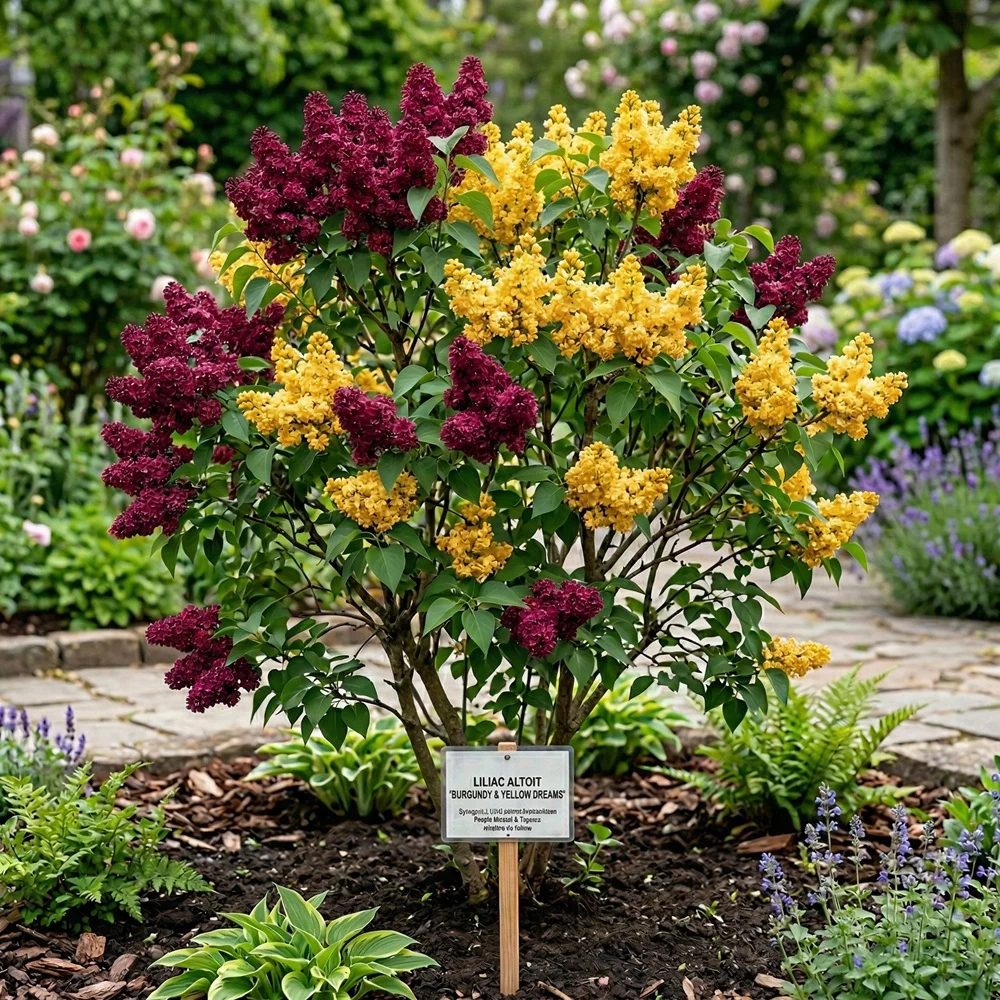 Descoperiti Liliacul Altoit , acesta contine nuantele de bordo inchis si galben , livrat in ghiveci de 3 L , cu inaltimea de 60-80 cm , bine dezvoltat!