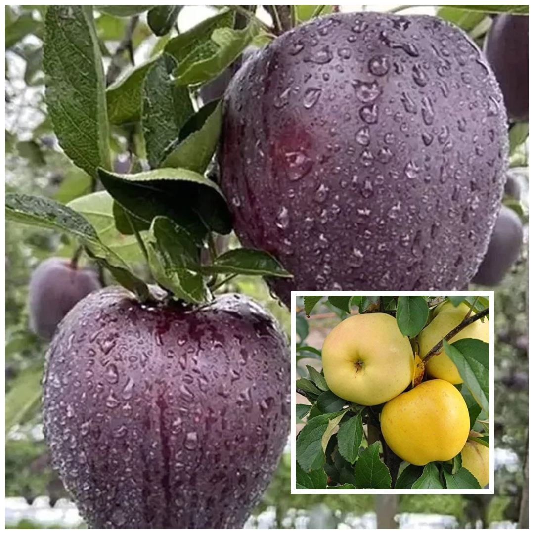 Contrast Vizual Unic: Combinația dintre merele negre-violet și cele galben-aurii oferă un aspect estetic de neegalat, transformând pomul într-o piesă de decor viu.