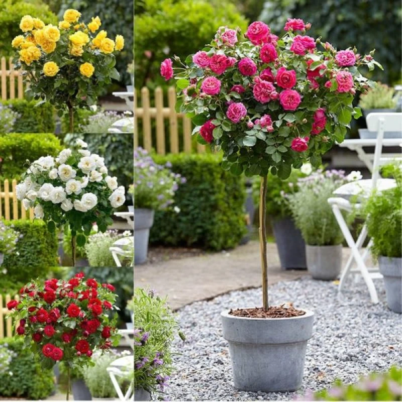 Pachetul conține 4 sortimente de trandafiri pomișor, livrați în ghiveci de 5L, cu o înălțime de 1,30 - 1,50 m. Acești trandafiri sunt altoiți pe cel mai puternic portaltoi disponibil, ceea ce le conferă o vigoare și o rezistență maximă, asigurându-le o dezvoltare sănătoasă.