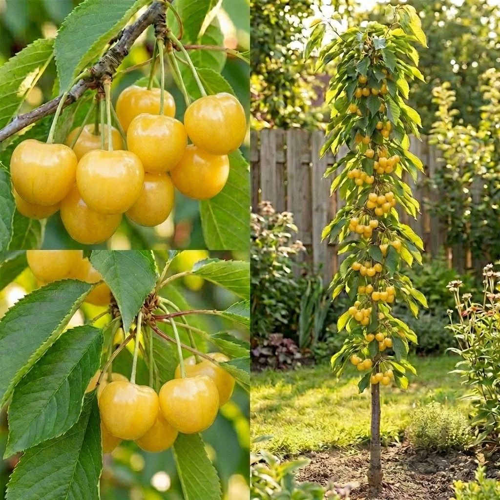 Cireșul columnar cu fruct galben este o apariție inedită și spectaculoasă în orice grădină, apreciat nu doar pentru forma sa compactă, ci mai ales pentru fructele de culoarea chihlimbarului. Este soiul preferat al celor care iubesc cireșele extrem de dulci, aromate și care doresc un pom "invizibil" pentru păsări.