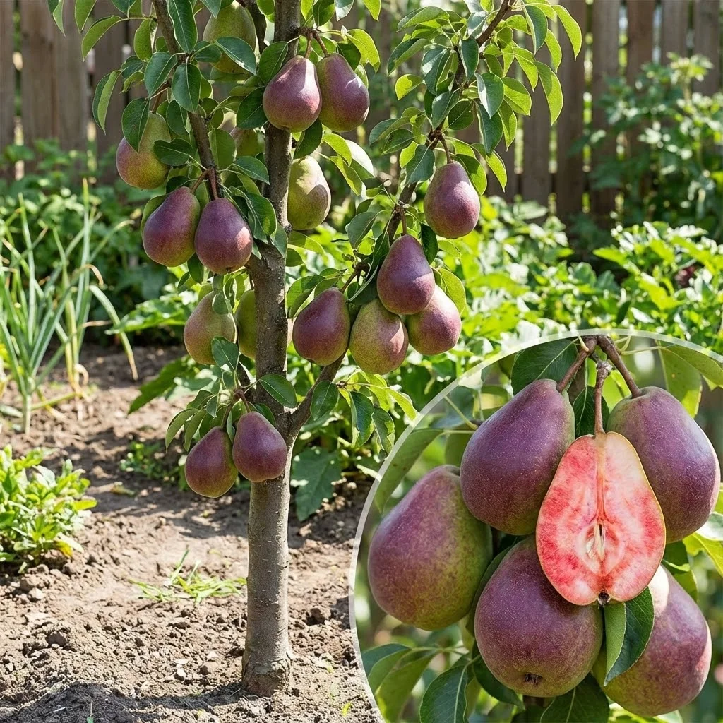 Pomul și Portul: Spre deosebire de perii clasici care ocupă mult loc, varianta columnară a soiului Busuioace crește sub forma unei tulpini drepte, viguroase, de 2-2.5 metri înălțime. Ramurile laterale sunt scurte (de tip spur), ceea ce face ca pomul să arate ca o coloană încărcată de fructe. Această arhitectură permite luminii să ajungă la toate fructele, asigurând o coacere uniformă și o colorare frumoasă.