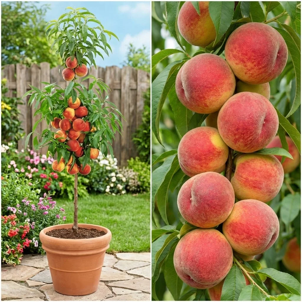 Piersicul Columnar Aida cu varsta de 4 ani, este un soi ideal pentru grădinarii care doresc să cultive pomi fructiferi, dar au la dispoziție un spațiu limitat. Acest soi se remarcă printr-o creștere mai lentă, dar viguroasă, având o înălțime maximă de 2,5 m, ceea ce îl face perfect pentru grădini mici sau pentru terase.