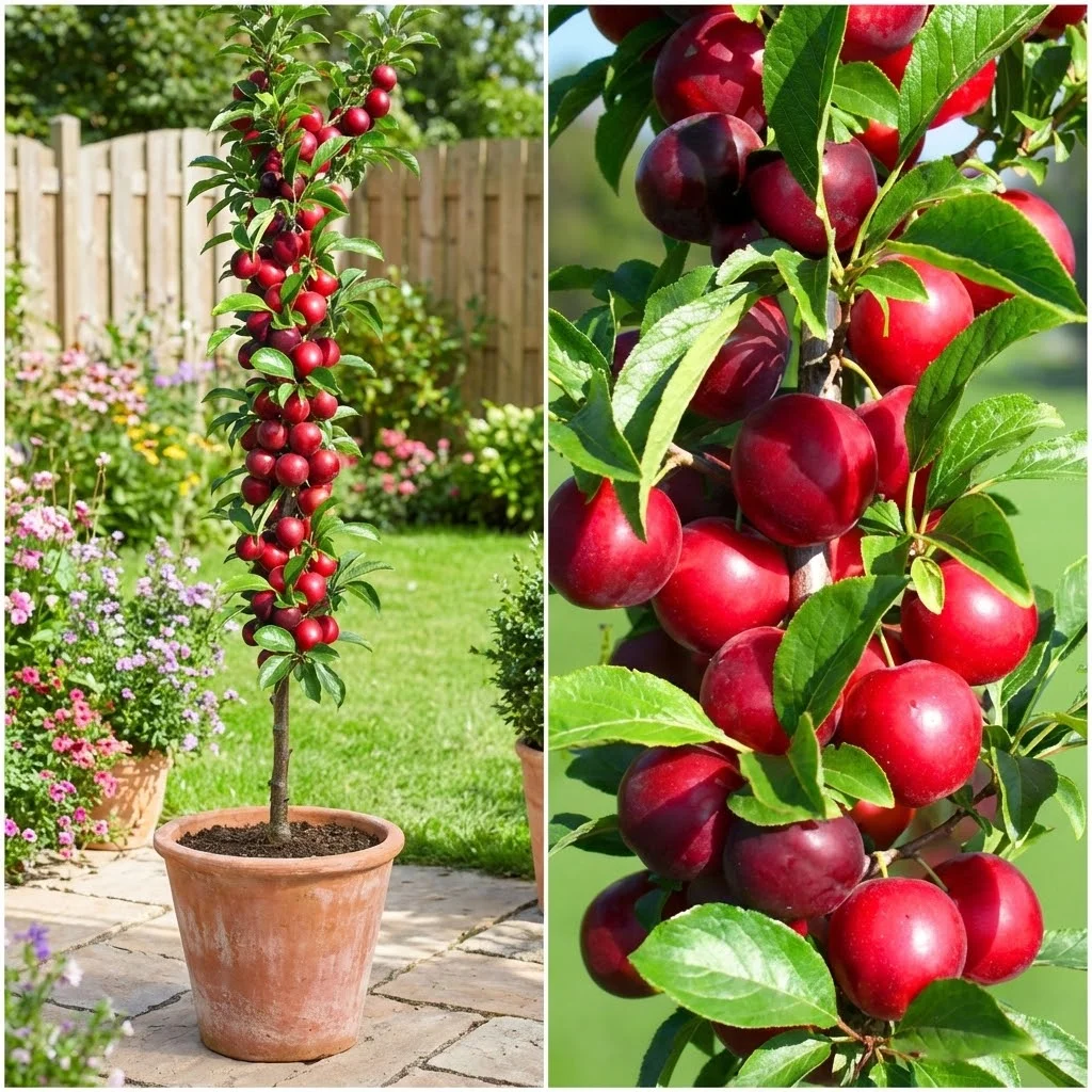 Prunul Columnar Rubin cu varsta de 4 ani în ghiveci de 5 litri, cu o înălțime cuprinsă între 80 și 120 cm, reprezintă o varietate uimitoare, ideală pentru grădinile de dimensiuni reduse sau pentru terase. Această plantă se adaptează perfect oricăror condiții de plantare, oferind o recoltă abundentă.