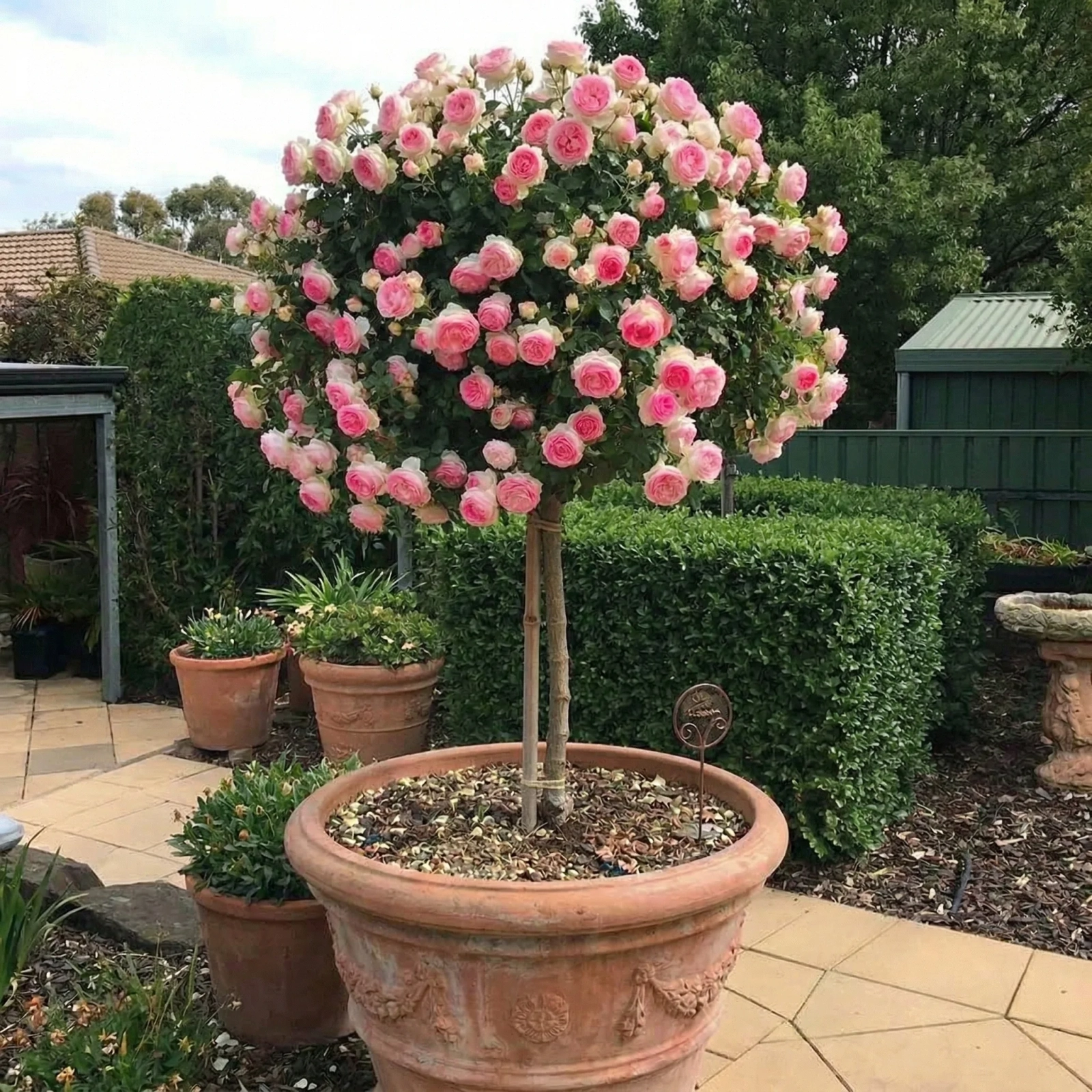 Trandafirul Pomisor Roz Cu Alb James J. Austin Plangator la Ghiveci de 5L este o alegere excelentă pentru grădinile care doresc să adauge o notă de eleganță și culoare. Acest trandafir, cu o înălțime la livrare de 1,30 - 1,50 m, este altoit pe un portaltoi robust, asigurându-i o vigoare și o rezistență maximă.