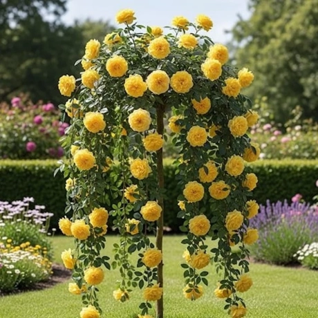 Trandafirul Pomisor Curgator Galben la Ghiveci de 5L, cu o înălțime de 130 - 150 cm, reprezintă o alegere excelentă pentru grădinile care doresc să adauge o notă de eleganță și culoare. Acest trandafir este altoit pe un portaltoi robust, ceea ce îi conferă o vigoare și o rezistență deosebită, asigurându-se astfel o dezvoltare sănătoasă și o florire abundentă.