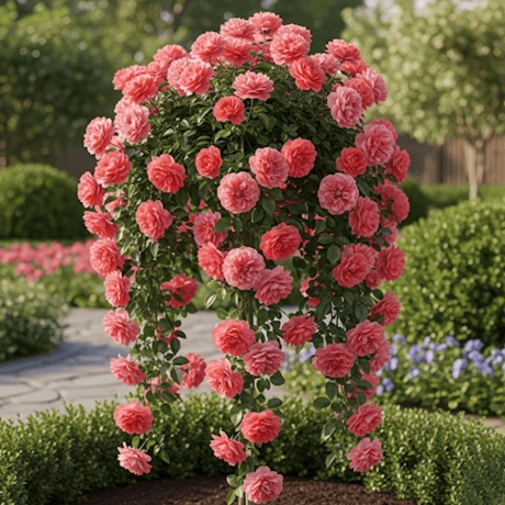 Trandafirul Pomisor Curgator Rosu la Ghiveci de 5L, cu o înălțime de 130 - 150 cm, reprezintă o alegere excelentă pentru grădinile care doresc să adauge o notă de eleganță și frumusețe. Acești trandafiri sunt altoiți pe cel mai puternic portaltoi disponibil, ceea ce le conferă o vigoare și o rezistență maximă, asigurându-le o dezvoltare sănătoasă și robustă.