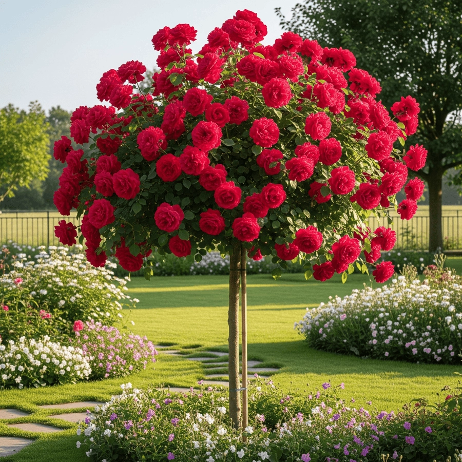 - Înălțimea la livrare: La livrare, trandafirul are o înălțime de 1,30 - 1,50 m, ceea ce îl face ideal pentru a fi plantat ca pomisor sau pentru a fi integrat în aranjamente florale mai mari.