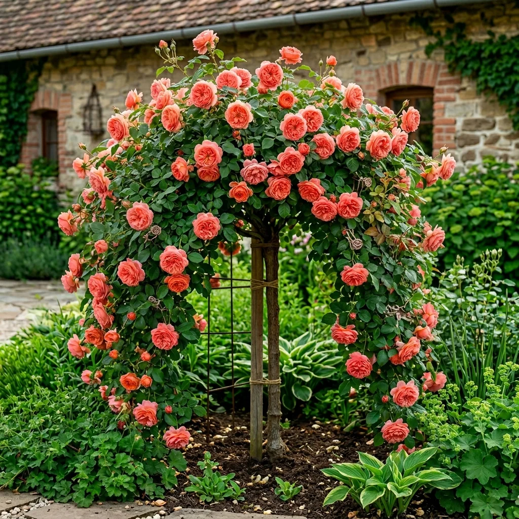Trandafirul Pomisor Somon Plangator la Ghiveci de 5L este o alegere excelentă pentru grădinile care doresc să adauge o notă de eleganță și culoare. Acest trandafir, cu o înălțime la livrare de 1,30 - 1,50 m, este altoit pe un portaltoi robust, asigurându-i o vigoare și o rezistență maximă.