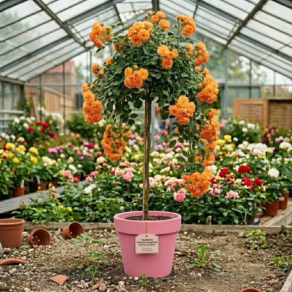 Trandafirul Pomisor Portocaliu Plangator la Ghiveci de 5L este o alegere excelentă pentru grădinile care doresc să adauge o notă de eleganță și culoare. Acest trandafir, cu o înălțime la livrare de 1,30 - 1,50 m, este altoit pe un portaltoi robust, asigurându-i o vigoare și o rezistență maximă.