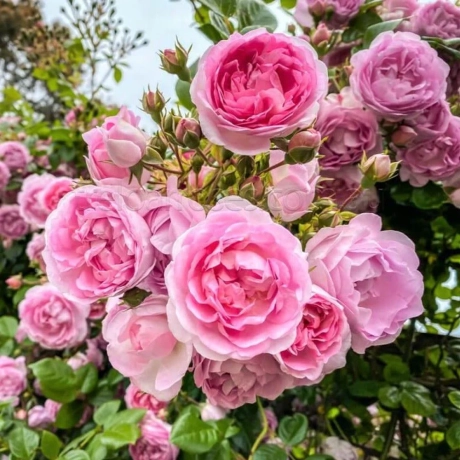 Florile: Au o formă globulară, de modă veche, și apar în grupuri mari, atârnând ușor sub propria greutate – un aspect care îl face ideal pentru a fi privit de jos, de sub o boltă. Culoarea este un amestec delicat de roz-lila spre centru și nuanțe mai deschise spre margini.