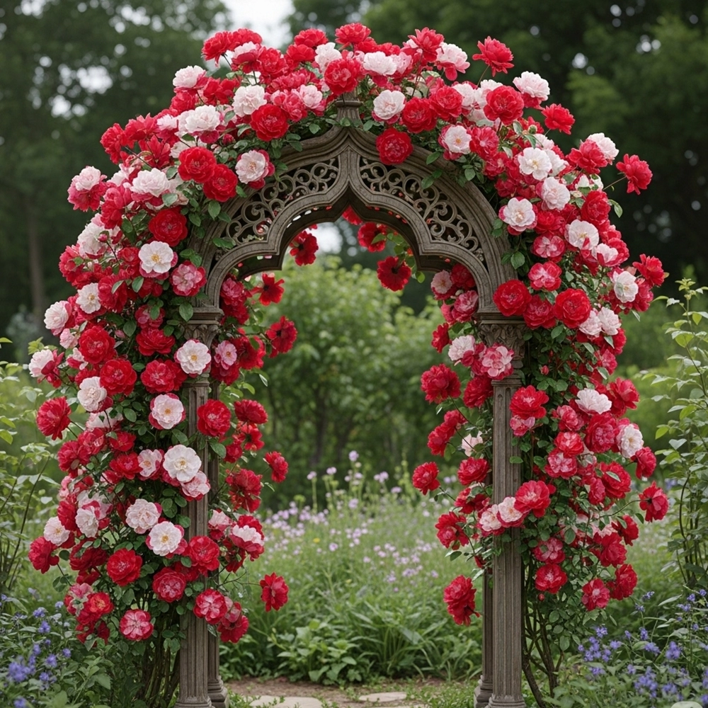 Trandafirul Urcator Multicolor 3 este o planta eleganta, perfecta pentru gradini si spatii verzi. Cu flori deosebite in nuante de rosu si alb, acest trandafir aduce un plus de frumusete in orice peisaj.
