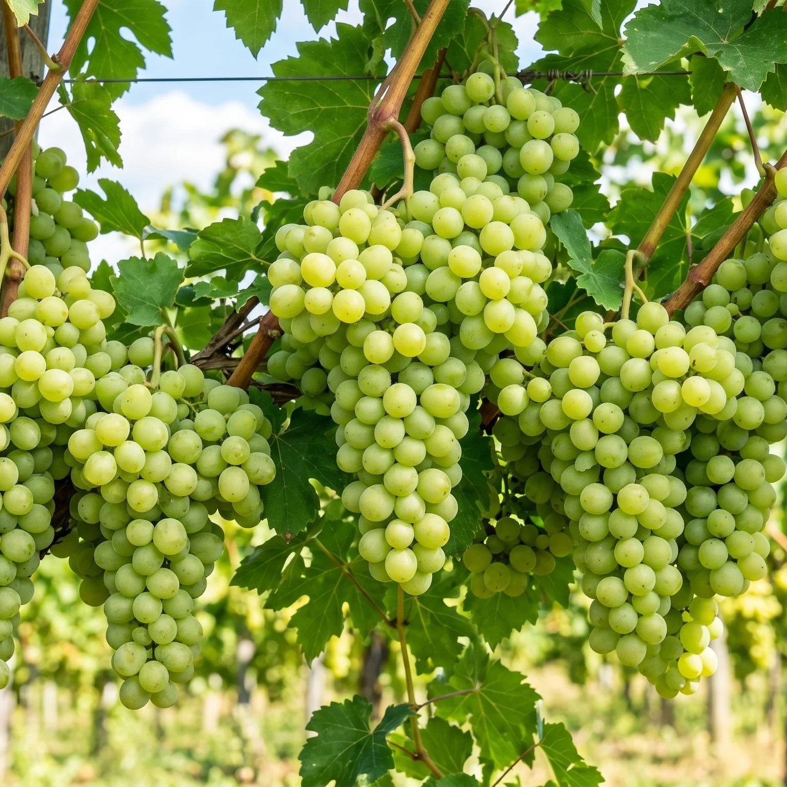 Aspectul fructului: Boabele sunt de mărime medie spre mare, de formă ovală, cu o culoare galben-verzuie strălucitoare. Atunci când sunt complet coapte, capătă o nuanță aurie, semn că aroma de vată de zahăr este la intensitate maximă.